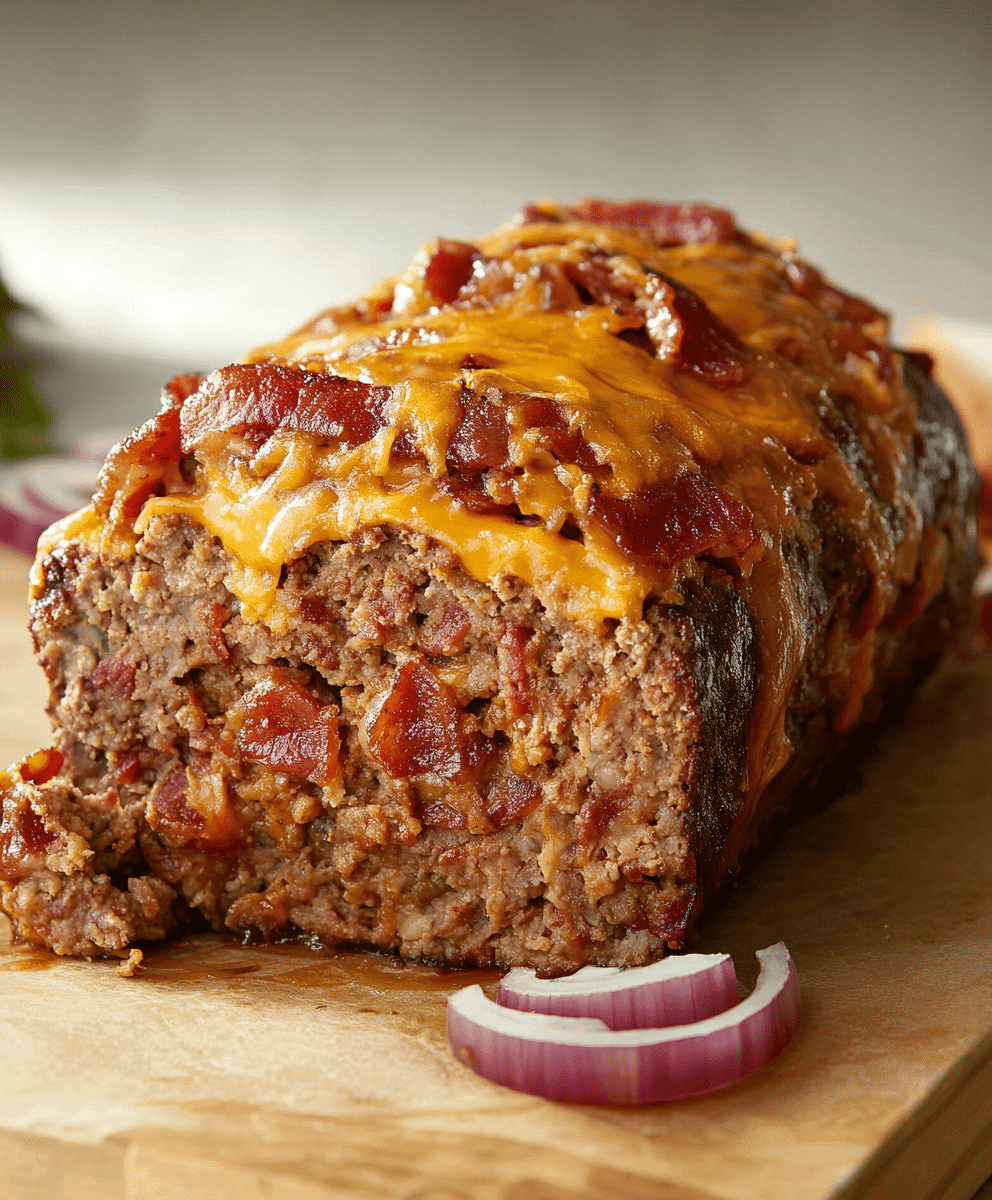 BBQ Bacon Cheeseburger Meatloaf is a savory meatloaf inspired by the flavors of a bacon cheeseburger. Ground beef is mixed with crispy bacon, sharp cheddar cheese, and seasoned with classic burger flavors like mustard and ketchup. It’s all topped with a tangy BBQ sauce that caramelizes as it bakes, adding that delicious smoky-sweet flavor you love in a burger. The result is a juicy, flavorful meatloaf that delivers all the satisfying elements of a cheeseburger in a comforting, family-style meal.