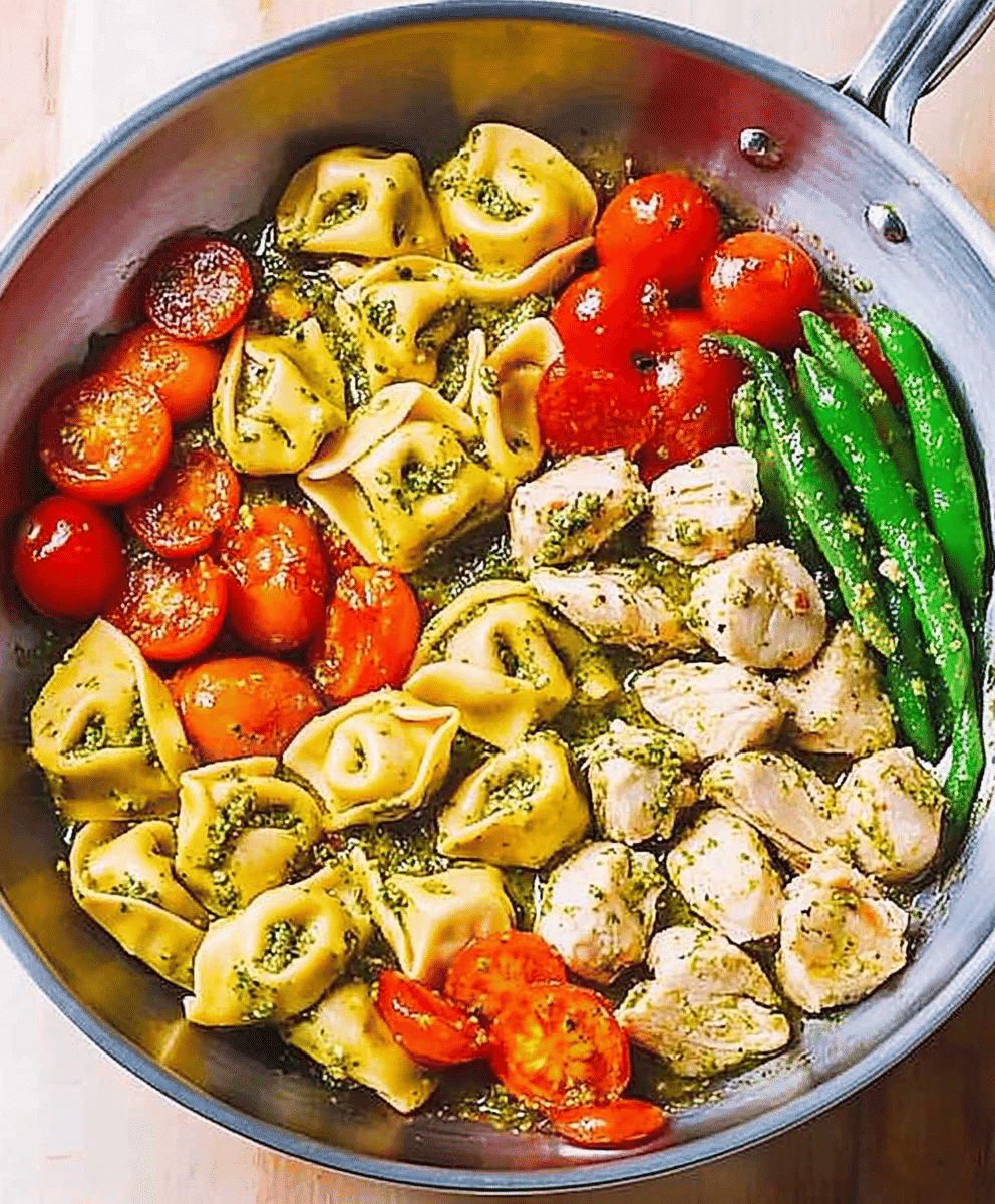 There’s something incredibly comforting about a big skillet of cheesy tortellini, tender chicken, and vibrant veggies all tossed in a savory pesto sauce. The aroma of garlic and basil fills the kitchen as it simmers, hinting at the cozy, satisfying dinner that’s just minutes away.