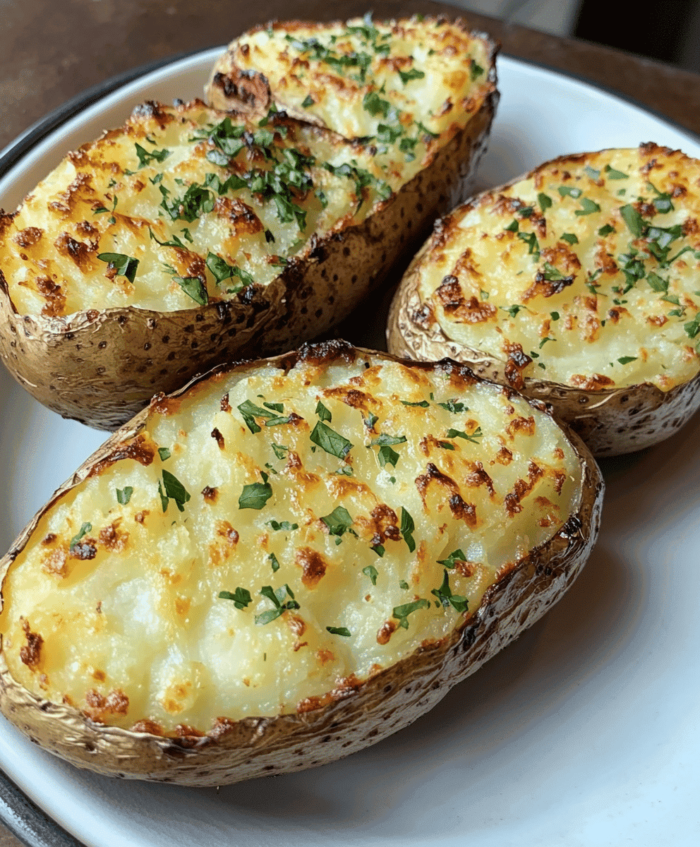 Indulge in the ultimate comfort food with these Twice Baked Potatoes. Baked, mashed, and stuffed with cheese, sour cream, and chives, these potatoes are crispy on the outside and creamy on the inside. They make the perfect side dish for holidays, barbecues, or weeknight dinners.